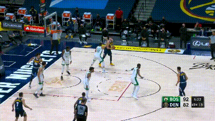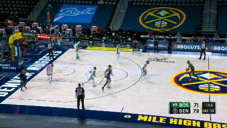 OK,如果穆雷在,掘金可以會在一段時間裏拆開穆雷和約老師分別帶隊,掘金不至於出現第三節末的窘迫——看看巴頓這套“接着奏、接着舞”風格的假動作,你只恨掘金中期交易裏怎麼沒把他一塊送走: