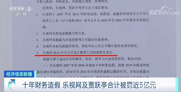 證監會查明,樂視網、賈躍亭等存在的違法事實包括:樂視網於2007年至2016年財務造假,其報送、披露的申請首次公開發行股票並上市相關文件及2010年至2016年年報存在虛假記載;樂視網未按規定披露關聯交易;樂視網2016年非公開發行股票行為構成欺詐發行等。
