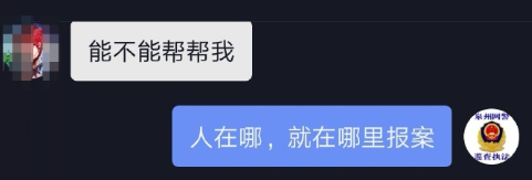 看起來確實挺可憐,但是泉州網警也沒辦法,於是給出了一個解決方案:“人在哪,就在哪裏報警”。