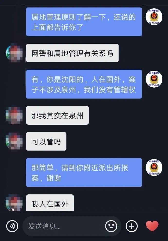 留學生認為只要他出事兒了,中國的網警就應該負責一切,可泉州網警知道真實的報案流程,必須要做筆錄加本人簽名,這些根本無法在網上完成,留學生想的太理所應當了。