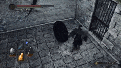 類似的情況不少。在《黑暗之魂2》中,把自己置於木桶和門之間,也可以將自己擠進屋子裏。