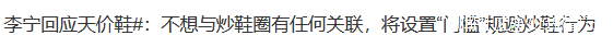 近日,李寧公司相關人士回應,從李寧品牌的角度考慮,公司並也不想與炒鞋圈有任何關聯。公司將以技術方式篩選疑似的炒鞋者,設置門檻規避炒鞋行為。