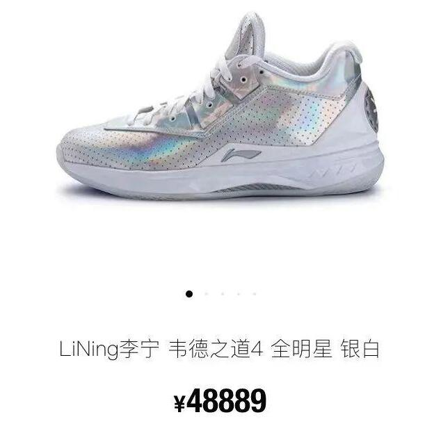 5日,中國證券報發文稱,在得物APP上搜索發現,李寧韋德之道4全明星銀白款,售價竟高達48889元,而該鞋參考發售價僅1499元,漲幅達31倍。