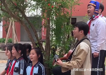 李老師還説,這種活動是廣西人在鄉下的日常,他只不過把它搬進了學校,藝術化處理了一下。而在“吉他伴奏山歌”的形式取得關注後,不少學生還特意來要求,希望能“全校唱山歌”。