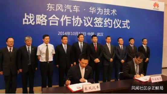 早在2014年,東風與華為簽署戰略合作協議,雙方將在車載電子產品、車聯網、智能汽車等領域展開跨界合作。