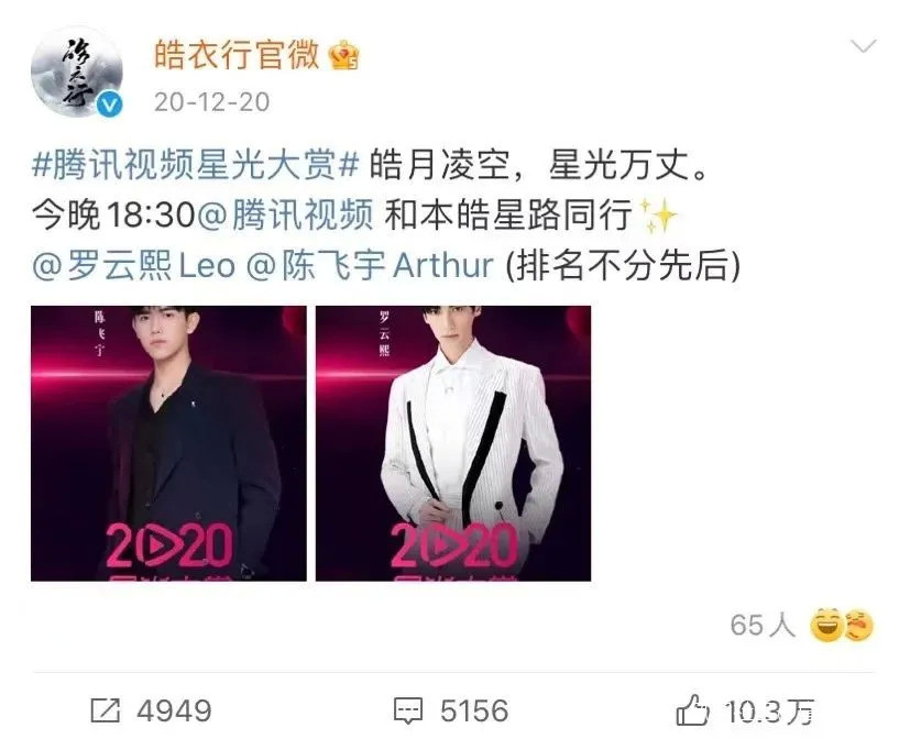 超話裏,陳飛宇的粉絲也在急切地催問着“《皓衣行》何時能上線”,因為粉絲們都在“賭”,並認定這是一部能把她們的“太子”捧上頂流寶座的重點作品。類似的情況也出現在羅雲熙的超話。