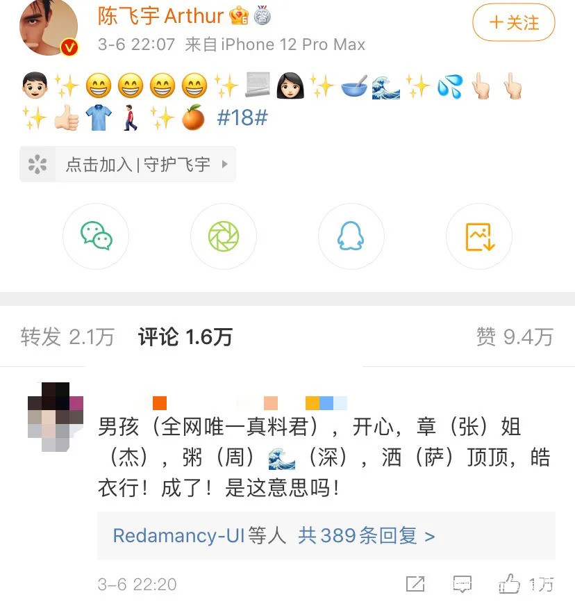 另外,陳飛宇本人和團隊也是異常看重這部“押寶之作”,無論是陳飛宇微博上曬出一連串emoji表情包,被網友解讀為對於《皓衣行》相關信息的暗示,還是被刪除的“只有fu出,才有回報”的迷惑留言,陳飛宇的着急心情躍然紙上。不少網友因此戲稱道:“感覺陳飛宇每天在家撕日曆,倒數自己當頂流的日子。”