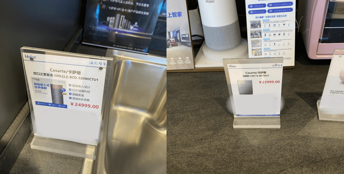而良好的線下體驗,也為海爾智家高端家電售賣提供支撐。諸如館內展示的卡薩帝品牌冰箱、洗碗機、蒸烤一體機都遠遠高於行業價格。