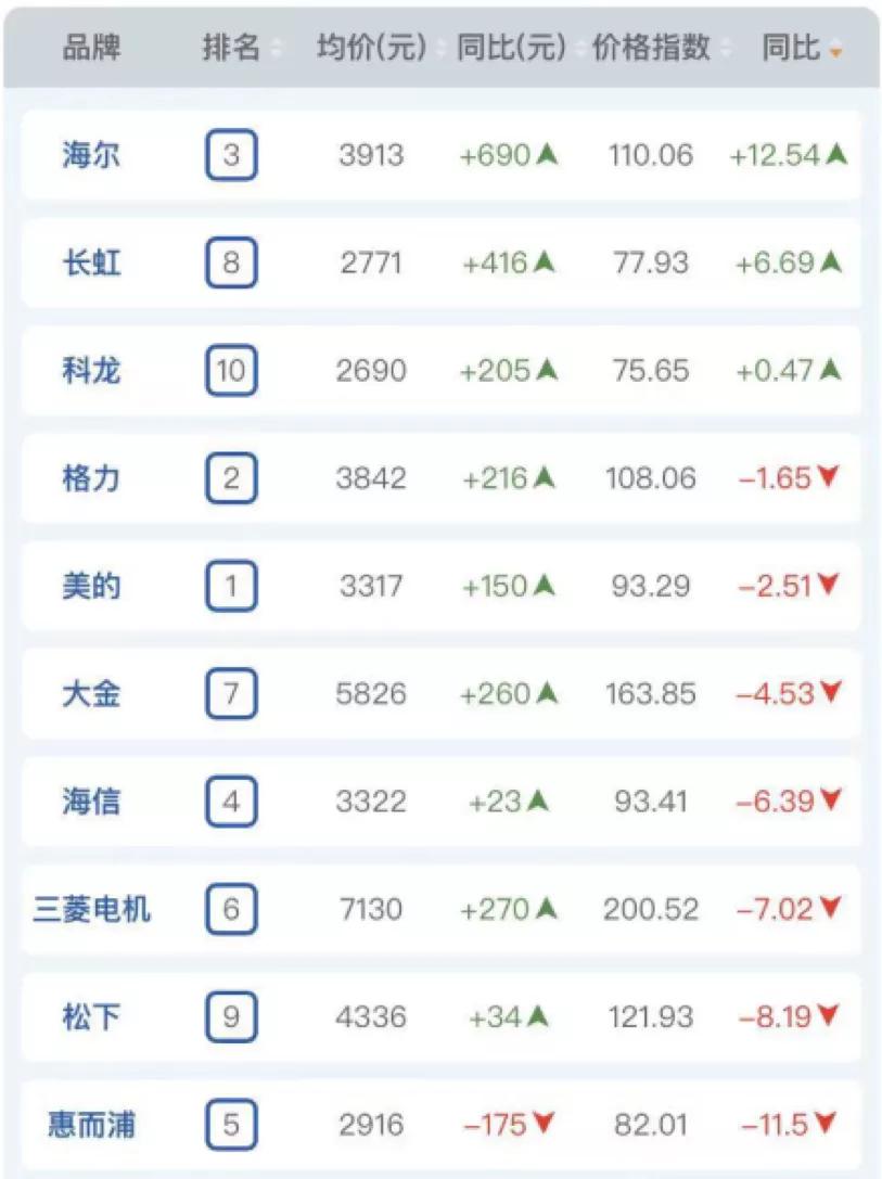 根據奧維雲網最新數據,2021年3月,線下渠道方面海爾空調均價3913元,格力均價3842元、美的均價3317元。無論在產品均價還是價格指數方面,海爾同比增長行業最大。