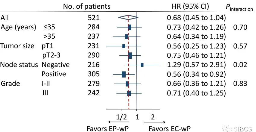 EC-wP組261例:表柔比星+環磷酰胺→每週紫杉醇