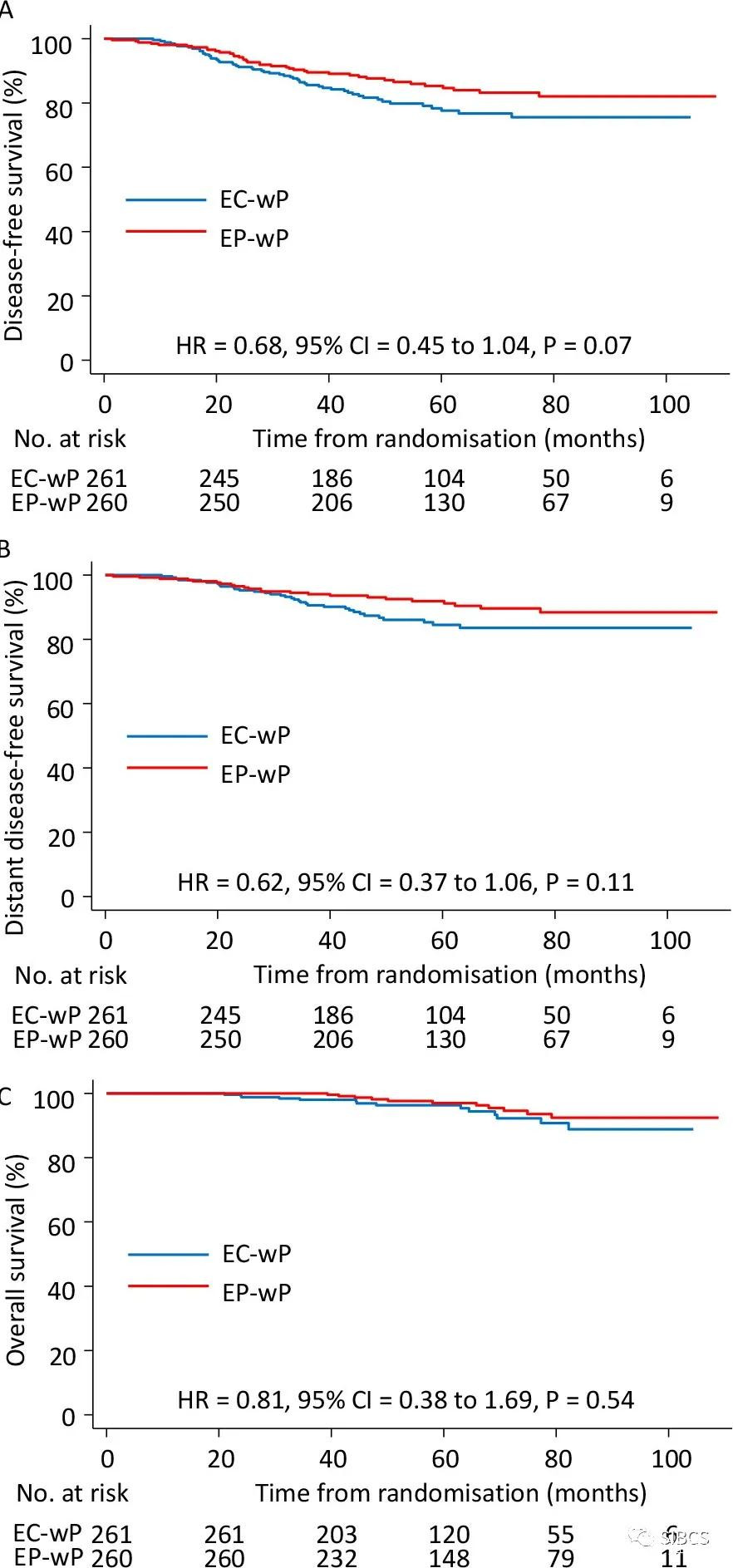 結果,中位隨訪62個月,EC-wP與EP-wP相比: