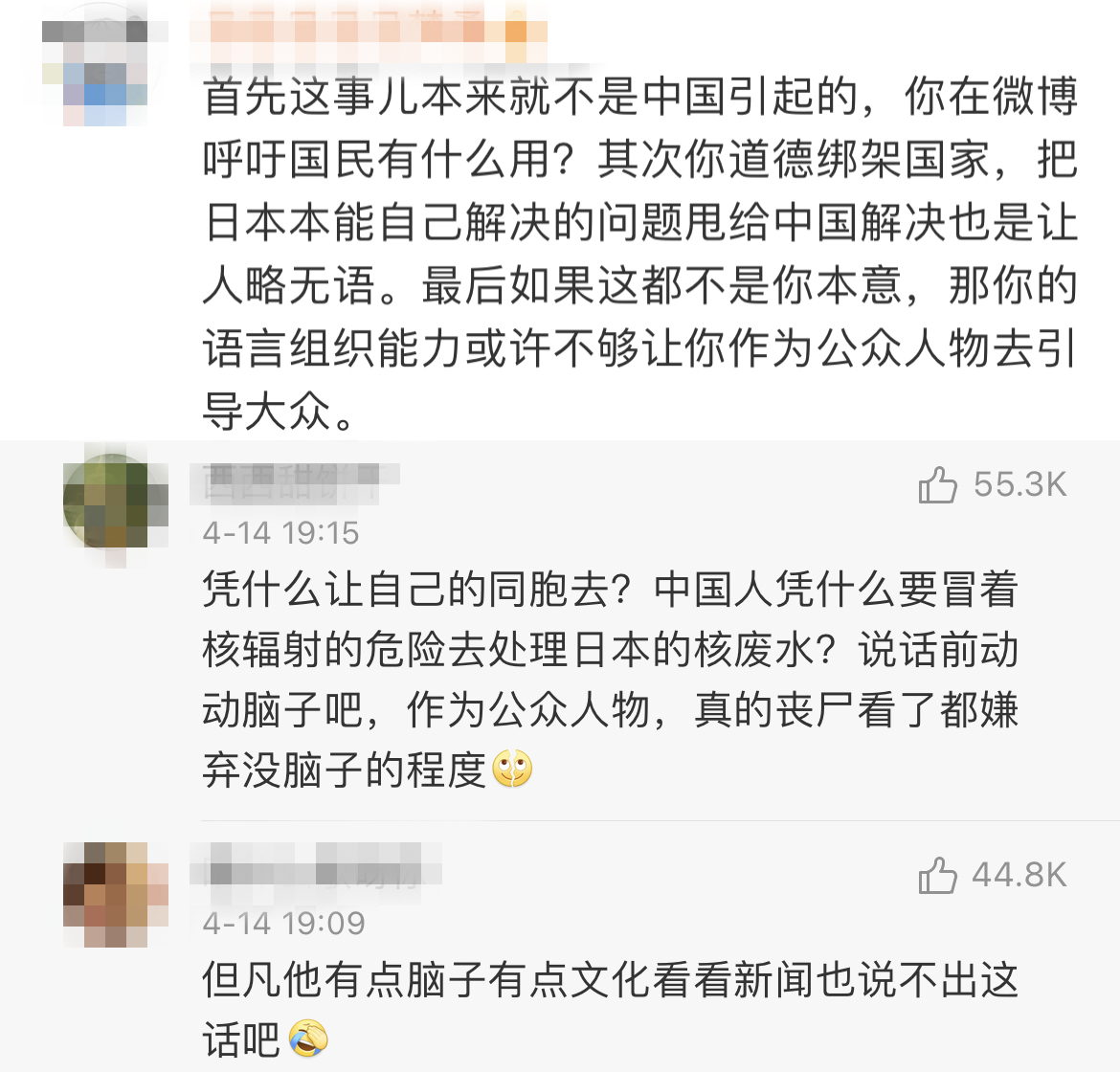 藝人呼籲中國幫日本建“大罩子”封閉核廢水,引粉絲集體脱粉_風聞