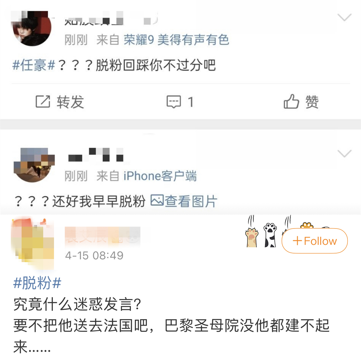 當晚,“脱粉”空降熱搜,部分任豪粉絲慶幸自己已經脱粉。