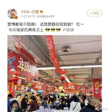 去年春節前夕,新冠疫情爆發不久,任豪:“愛情都輪不到我!還想要肺炎輪到我?切~”