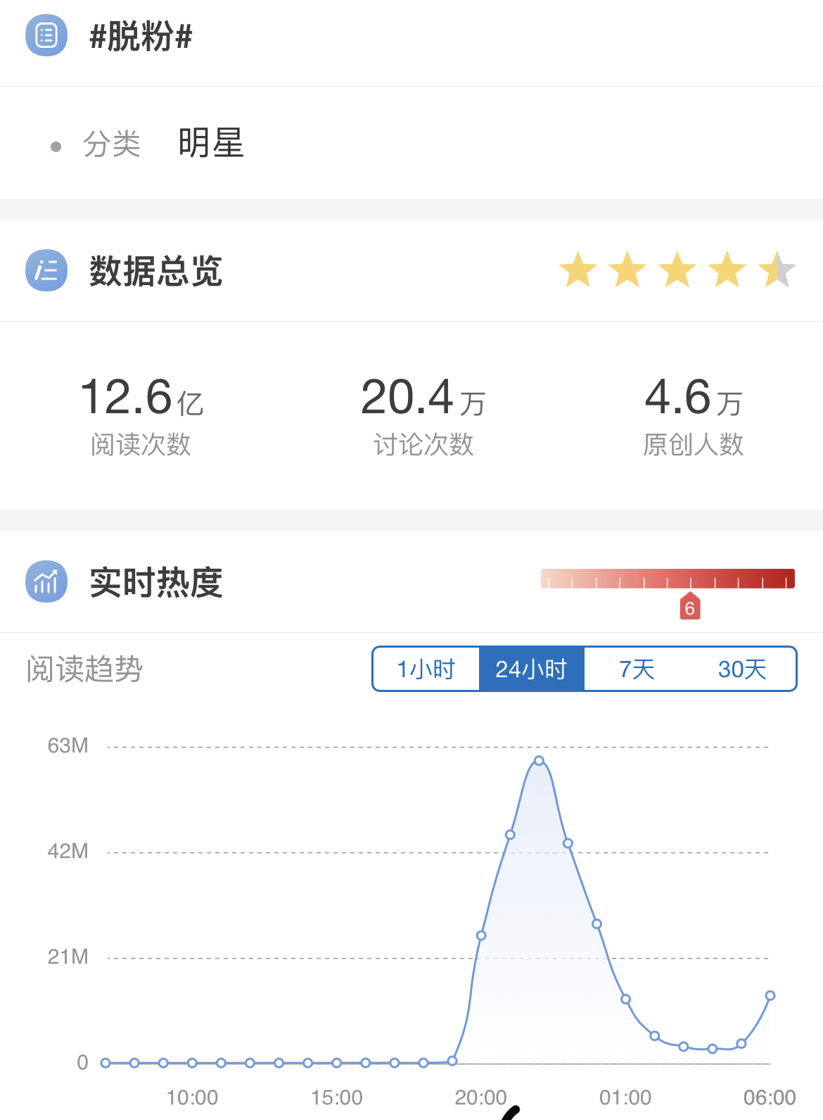但很多粉絲還是醒悟了。當晚,“脱粉”登上熱搜,截至15日上午8時,討論次數已達12.6億。話題區裏,一半是任豪粉絲正在脱粉,另一半是慶幸自己脱粉早。