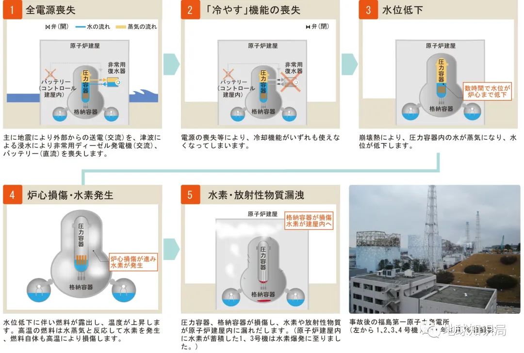 福島第一核電站1至3號機組事故原因示意圖
