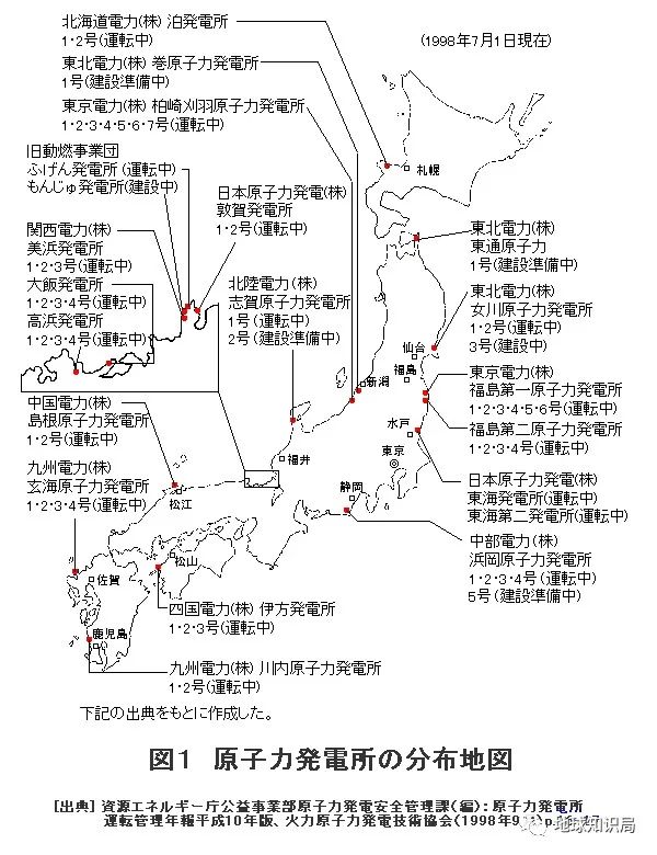 日本核電站分佈也有一定規律,由於日本無法做到核燃料大規模自給自足,只能依賴於進口,外加便於獲得充足的冷卻水,所以核電站全部分佈在沿海地帶。