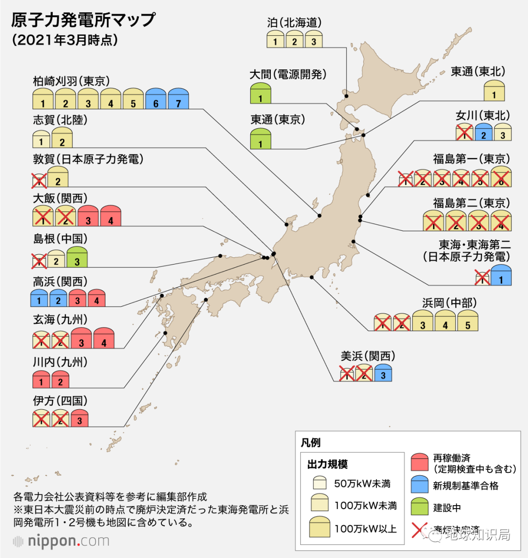 到2021年,日本目前正在運營的核電站有33座,正在建設中的有2座,規劃中的有3座。