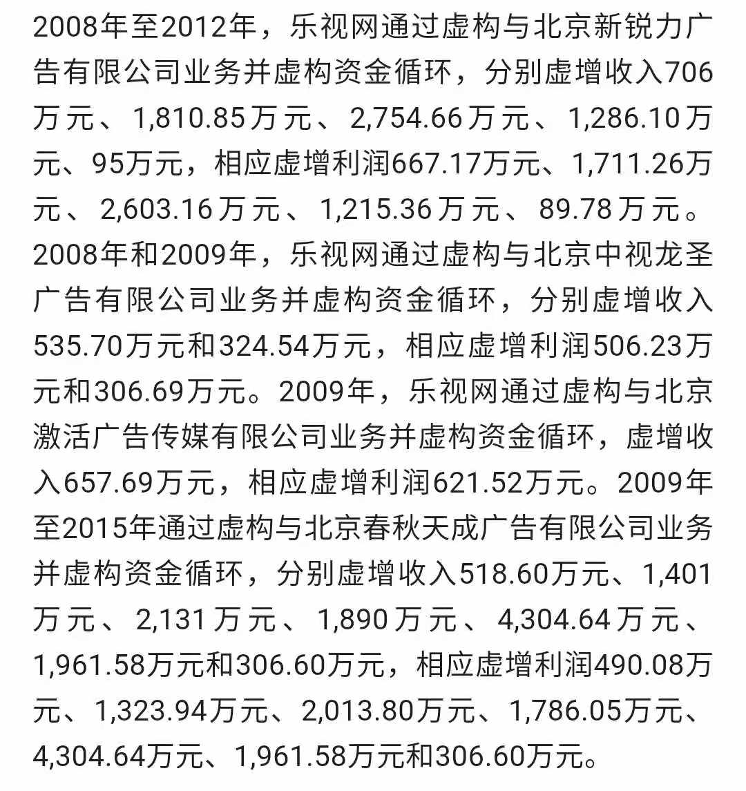 一****是樂視網於 2007 年至 2016 年連續十年財務造假,其報送、披露的申請 IPO 相關文件及 2010 年至 2016 年年報存在虛假記載 ;