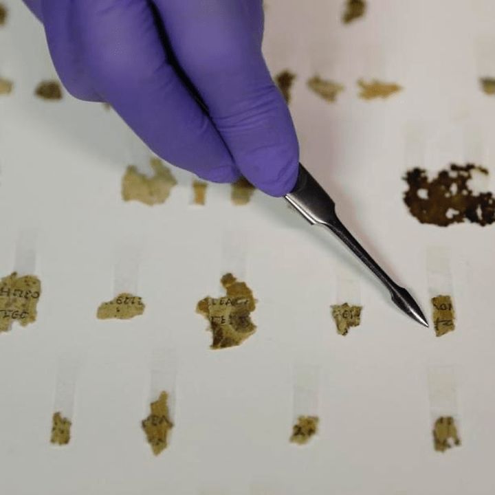 這裏有一些死海古卷的圖,你們可以看看,上千年的羊皮卷是什麼樣子。