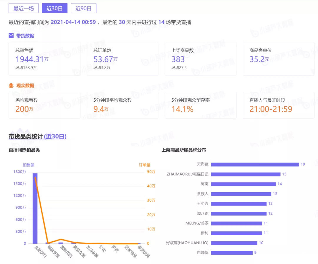 浪胃仙已緊鑼密鼓地開闢直播新戰場。近一個月,浪胃仙進行了14場直播帶貨,總銷售額達到1944萬,單場銷售額超過百萬元。這在吃播博主裏面已經屬於比較好的帶貨成績。