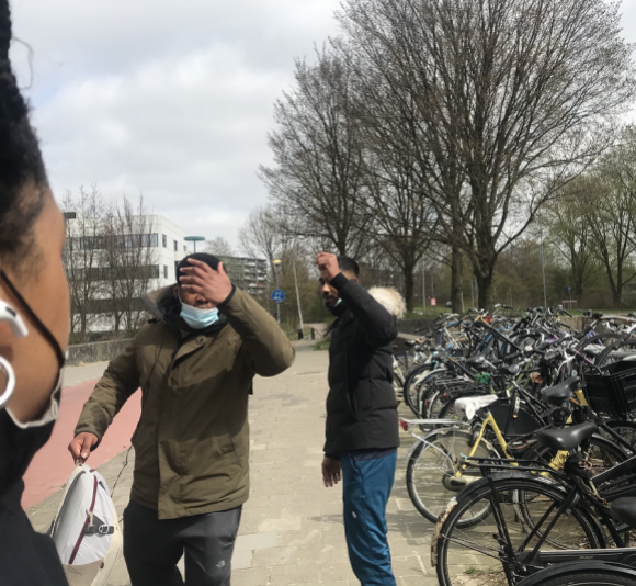 4月4日週日下午,我從好友家出發,步行去Van der Madeweg搭乘地鐵回家。走到地鐵口,迎面兩個男性並排站在自行車停車區域對我揮舞着手嚷着什麼。我帶着耳機聽不見內容,但憑神色表情判斷對方意圖不善,便沒有理睬徑直走向入站口。