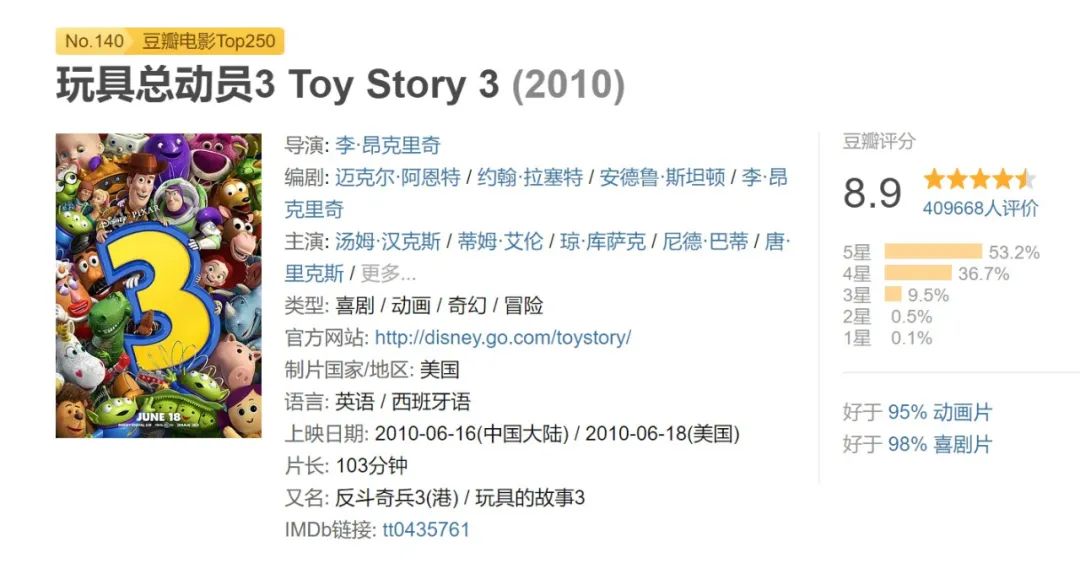 結果,內部已經經歷了7次迭代和優化的《玩具3》,最終上映後獲得如潮好評,拿下了奧斯卡最佳動畫長片獎以及多項提名——這是皮克斯在同一個系列故事中取得的第3次連續成功。