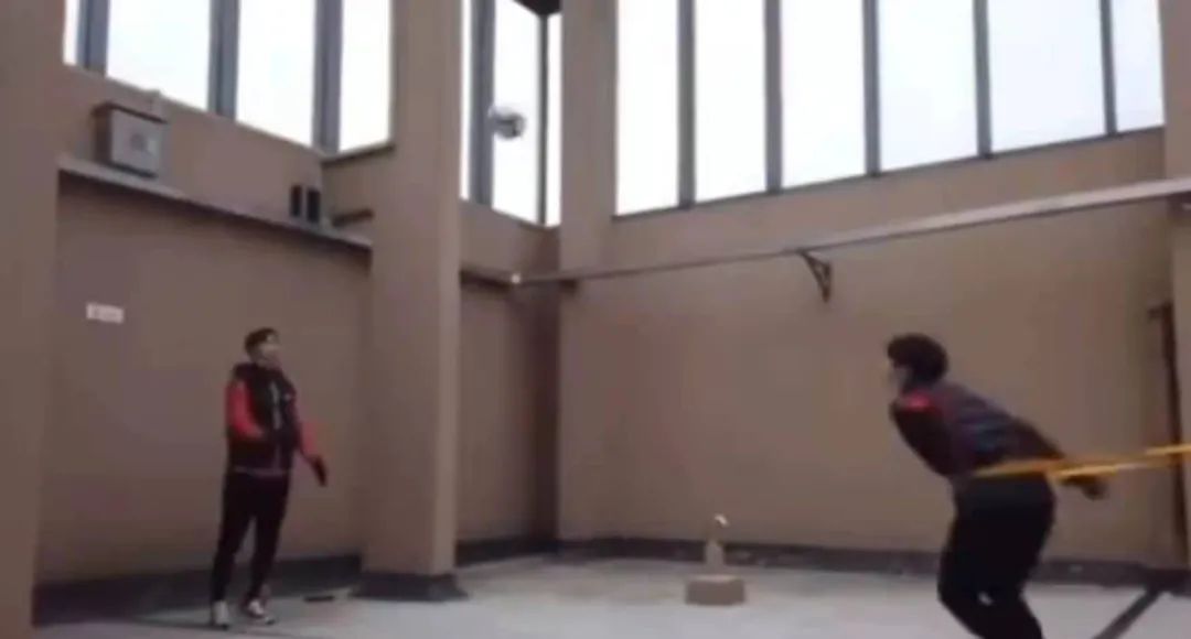 不同的是,顛球失敗後,曹國棟就接着顛回去了,而王霜不,她偏要原路返回再重頭開始顛。