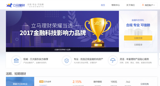 立馬理財於2015年10月上線,算是上線比較晚的理財平台,但在2017年,該平台的交易額就已突破320億元,用户超過400萬。