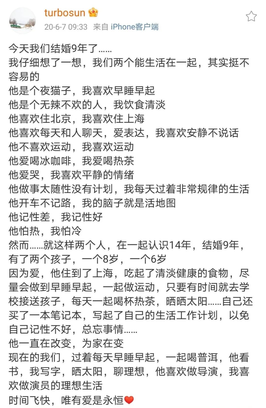 記得去年,兩個人結婚9年的時候,孫儷發了一篇微博,裏面細數了二人的不同,卻又如此地互補。