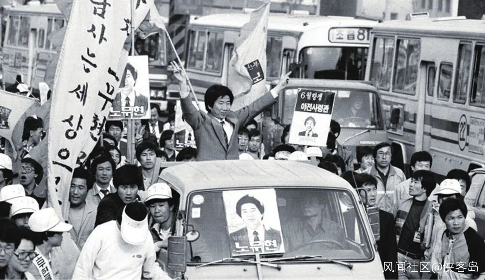 盧武鉉一波又一波的遊行攻勢,讓軍政府越來越吃不消,手上沾滿血腥的軍人大統領全斗煥“看破紅塵”,起了歸隱山林古廟的念頭,其繼任者軍頭盧泰愚搖身一變,成為“民主人士”,趁機拋出“六二九宣言”,許諾下屆總統開始直選。