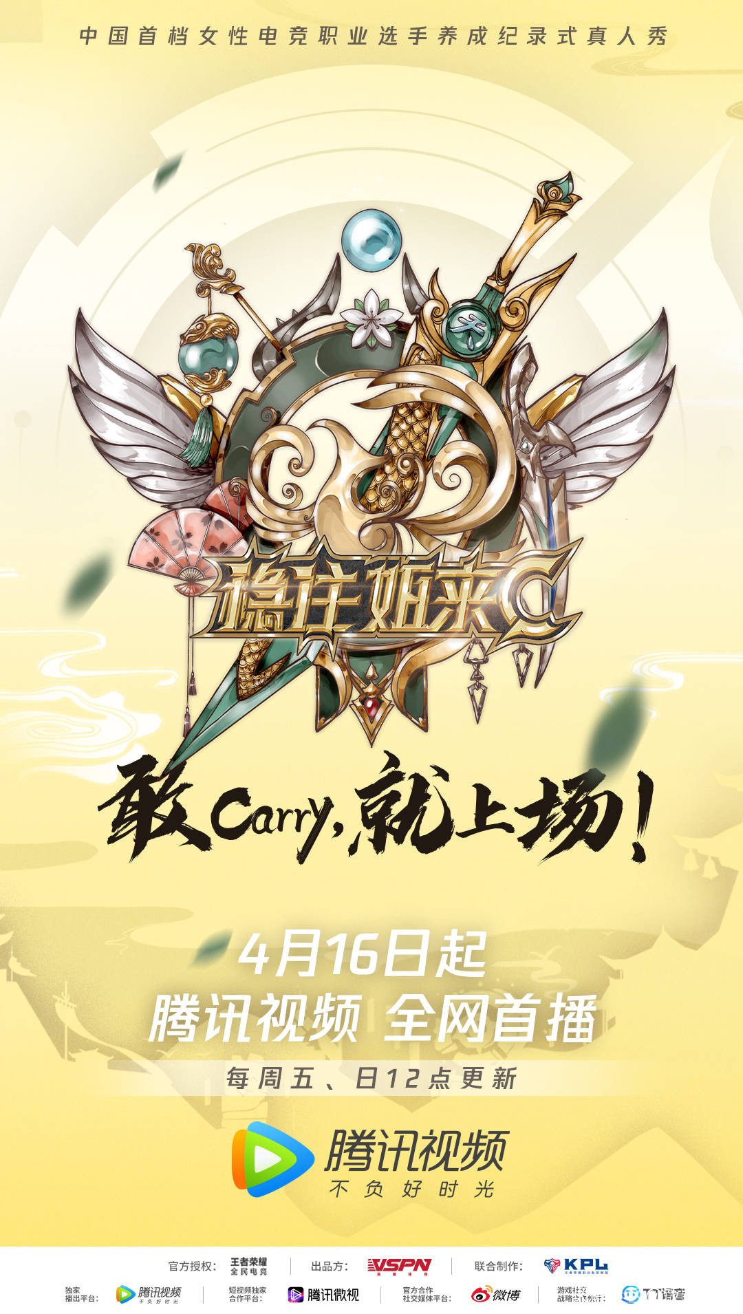 近日,由王者榮耀全民電競官方授權,英雄體育VSPN出品,KPL王者榮耀職業電競聯盟聯合制作的中國首檔女性電競職業選手養成紀錄式真人秀《穩住姐來C》正式定檔4月16日,每週五、日中午12點在騰訊視頻獨播。更有火豹俱樂部教練南瓜,杭州LGD大鵝賽訓指導、KPL官方評論席常駐嘉賓虎妞強勢加盟,擔任導師,攜手遊戲社交戰略合作伙伴:TT語音,一起助力24名選手追逐電競夢想。