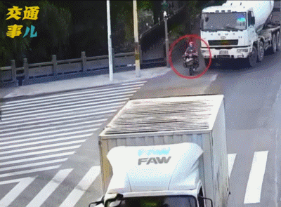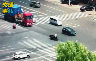 連人帶車被捲入貨車右後輪下