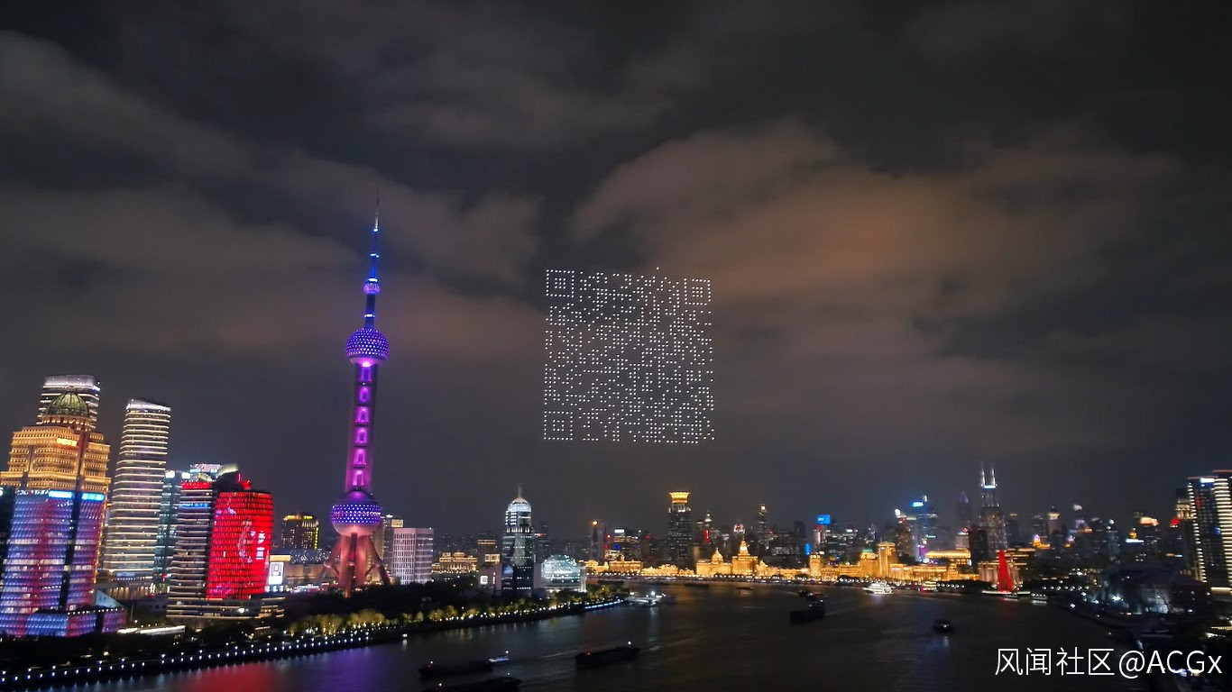 在4月17日簡中服生日當天,去年今日刷爆社交平台的“大樓二維碼”再次席捲,這次它出現的地方,是在上海外灘,存在於上千架無人機別樣的“團隊戰”演出中。