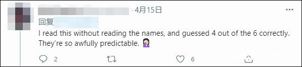 難怪,有網民在推特上表示,自己不看報道都能猜出有哪些人,6 個人裏猜對了 4 個……