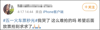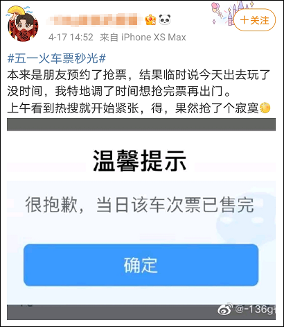 因此,繼12306系統宕機後,“五一火車票秒光”更是“搶票人”們要面對的殘酷現實。許多網友開始發現,自己就“搶了個寂寞”。
