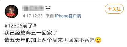 於是,在今天的微博上,湧現了一批批哭着喊着12306崩了,自己心態也崩了的網友: