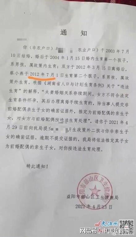 日前,湖南益陽“時隔9年下發違法生育通知”一事被報道後引發社會關注。