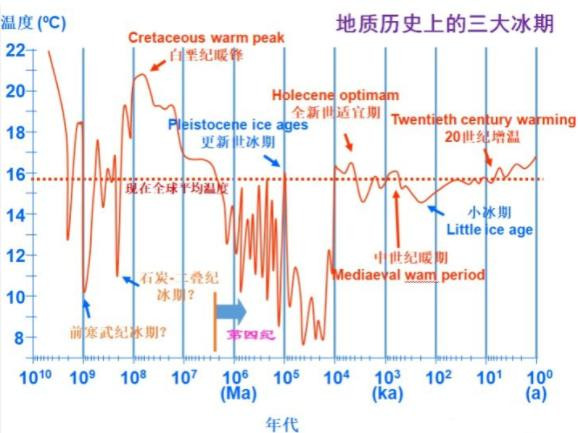 地球在40多億年的歷史中,曾出現過多次顯著降温變冷。在前寒武紀晚期、石炭紀至二疊紀和新生代的冰期稱為大冰期,時間尺度至少數百萬年。