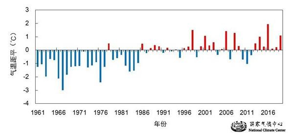 另外,2019/2020年冬季(2019.12.1-2020.2.29),全國平均氣温-2.25℃,較常年同期(-3.34℃)偏高1.09℃,是1961年以來歷史同期第五高(圖1)。