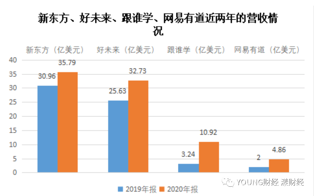 除疫情等因素的影響外,來自好未來、跟誰學、網易有道等的競爭搶佔了新東方的部分市場份額。(見下圖)