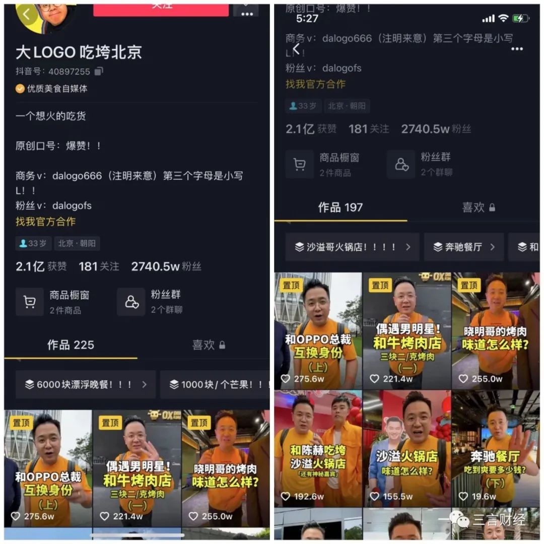 通過這種體驗式炫富的視頻,某短視頻平台的美食主播“大LOGO吃垮北京”吸粉2700多萬。