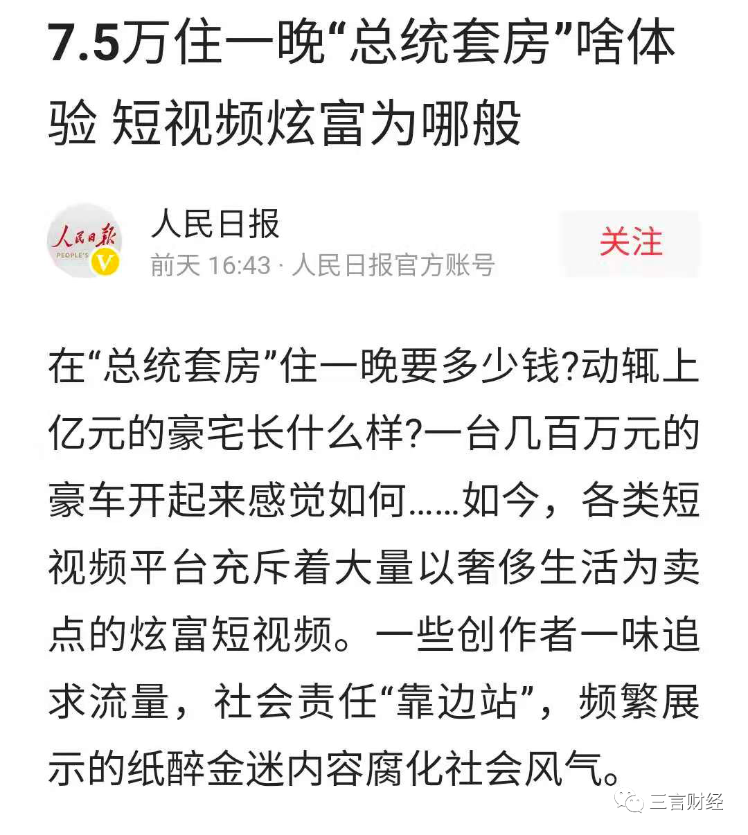 不過最近他被人民日報、新華社等點名了,直指此類炫富短視頻背離主流價值觀,帶來巨大負面影響。