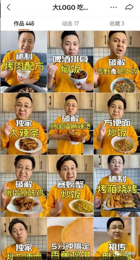 為了持續輸出短視頻,大LOGO想到了在家制作美食教程,包括破解吉野家、楊國福等知名餐飲企業菜品等。