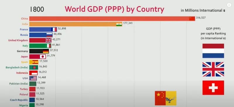 英國經濟學者麥迪遜在《世界經濟千年史》中,通過數據計算得出一個結論: