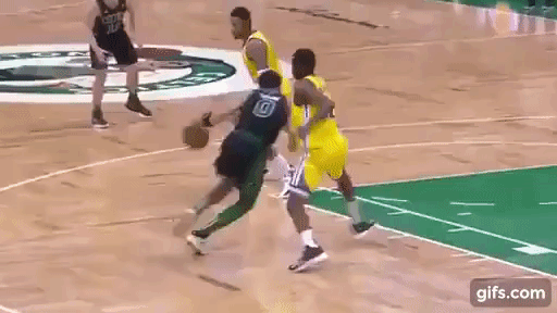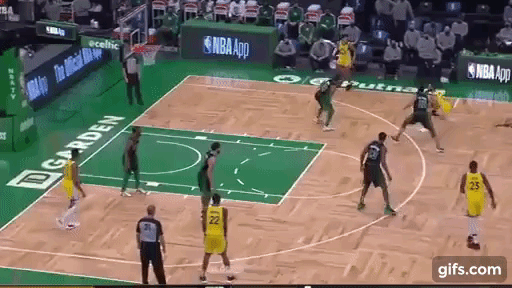 上半場最後一分鐘,肯巴和塔圖姆各一個追身上籃。然後是普里查德牽走格林,塔圖姆壓哨一個科比式強投。