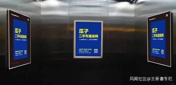 楊浩湧要的是致命一擊,快速結束戰爭。在激進營銷策略下,“瓜子二手車直賣網”佔據了國內40個城市的樓宇電梯、公交各類屏幕。“每六條廣告片裏面,就有一條是瓜子二手車的。”