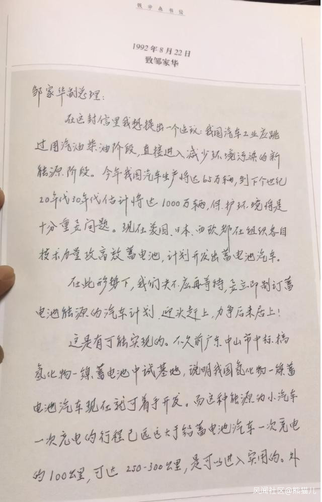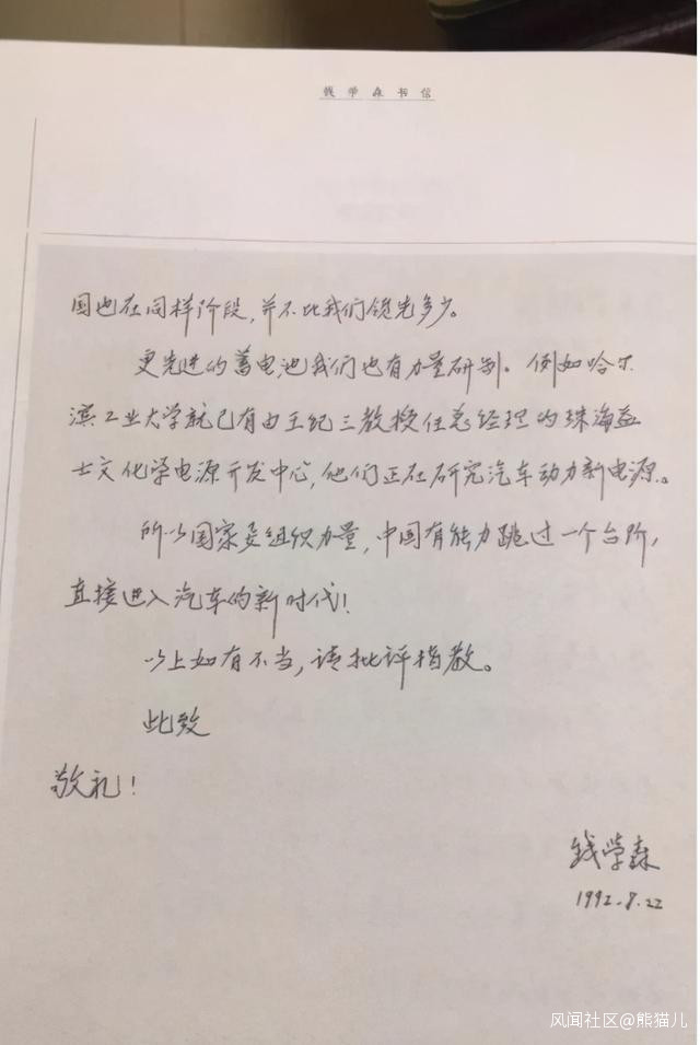上世紀的92年,錢學森寫信給時任副總理的鄒家華,在信中大力推薦國家跳過燃油汽車而直接發展新能源汽車。