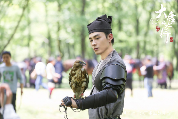 @鳥窩裏的貓妖所發的圖片隸屬《驪歌行》官方微博去年5月公佈的一組劇照中的一張,角色設定為劇中的“四海幫幫主”,有一隻鷹王常伴左右。