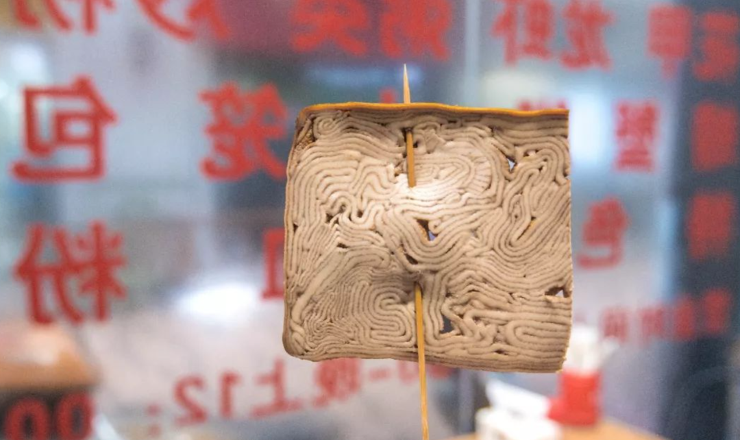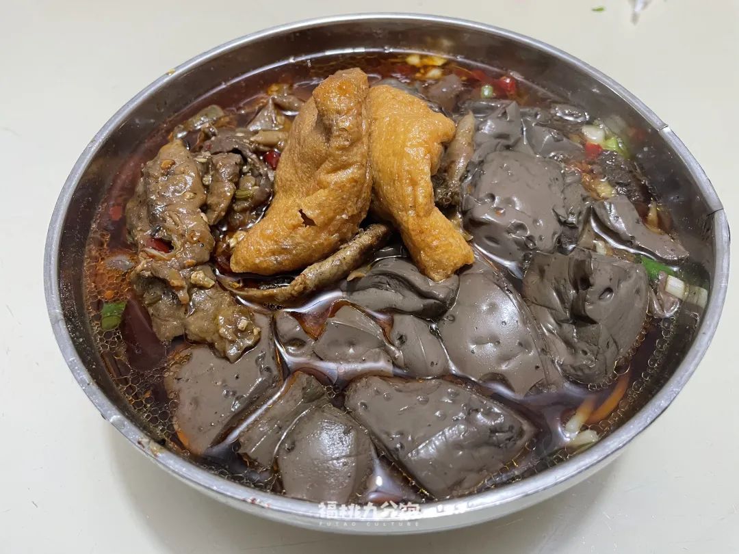有腳板——就是疊在一起的豆皮下油鍋炸到酥,放入水煮湯裏,一半酥脆,一半吸着鮮辣的湯汁。